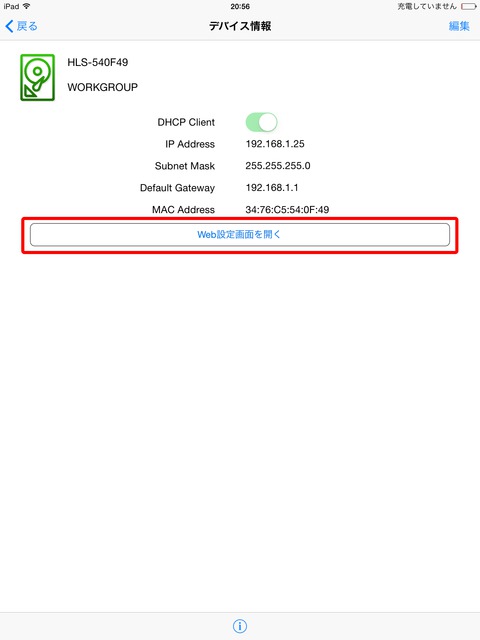 【3】NASを選択して「Web設定画面を開く」をクリック