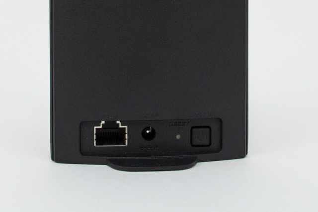 背面端子部。LAN端子、電源端子、電源スイッチとシンプルな構成