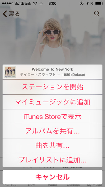 プレーヤー画面の右下のアイコンをタップすると表示されるメニュー一覧。専用アイコンでダイレクトにマイミュージックに追加することもできる