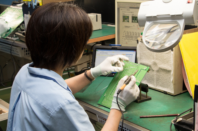 この工程を経て完成した基板は、全て目視でチェックが行われ、さらに細部に手作業が加えられる