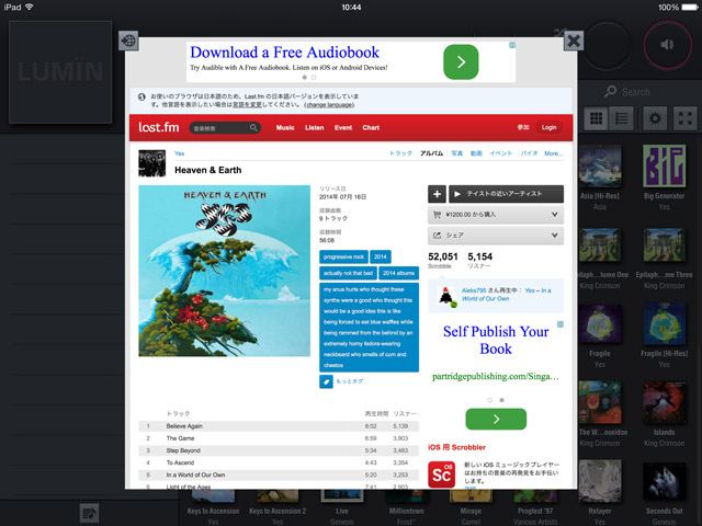Last.fmのアルバム情報を表示したところ