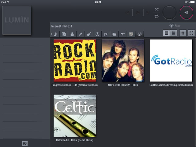 Tunein Radioから登録したインターネットラジオ曲の一覧が表示される