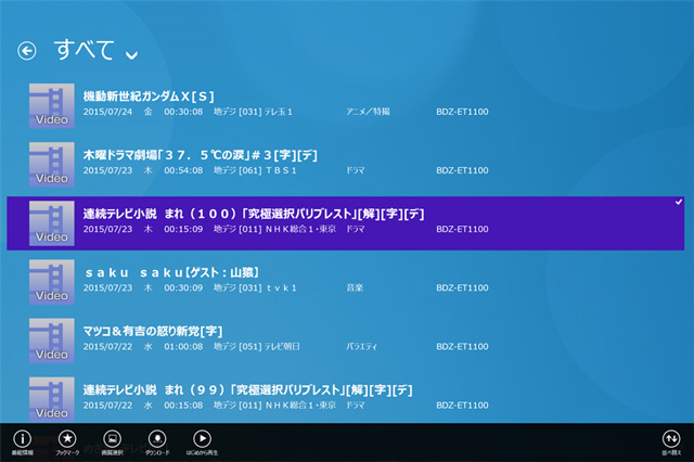 リスト表示の場合、持ち出ししたいコンテンツを選択して右にフリック。背景色が変わったら、下側に表示される「ダウンロード」を選択する
