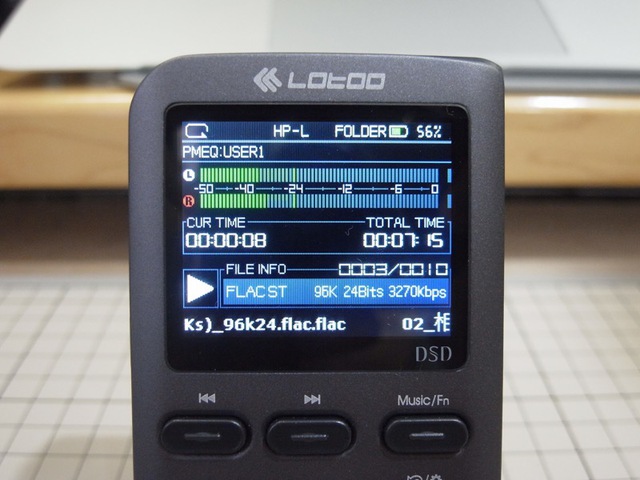 再生中の基本画面。メーターが動いてたりするので意外にさびしくはない。テキストベースだと画面解像度の低さもよい具合のレトロ感を醸し出す