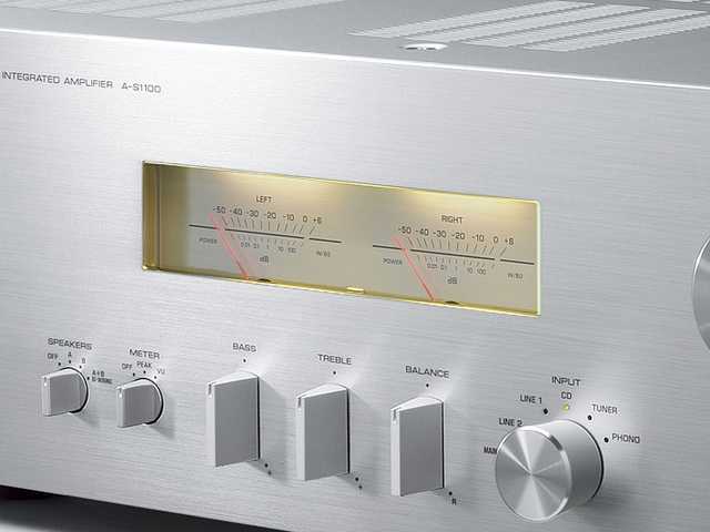 A-S1100のフロント。上位機A-S3000/2100と同じくレベルメーターを装備する“新世代”デザイン