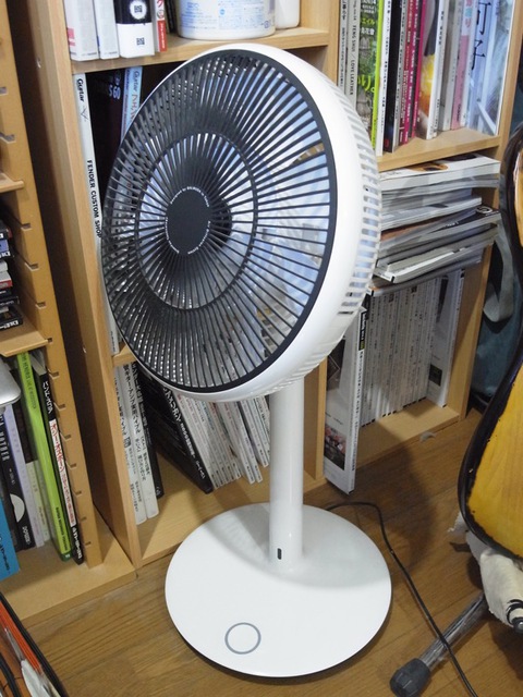 旧メイン扇風機「GreenFan mini」はその小ささを生かしてデスクに向かう自分をピンポイントで狙える位置に押し込んで超微風運転。こちらは僕にサイドから風を送る