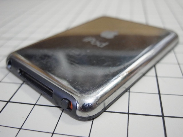 懐かしのiPod nanoの裏面。見事な鏡面仕上げもいまや傷だらけ。だがそれがいい!