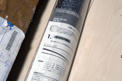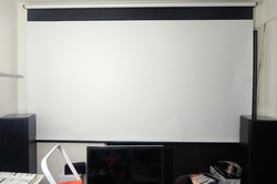ピジョンのペーパースクリーン「SSW-100」。スクリーンゲインは0.8、外形サイズは2,385W×1,820Hmm