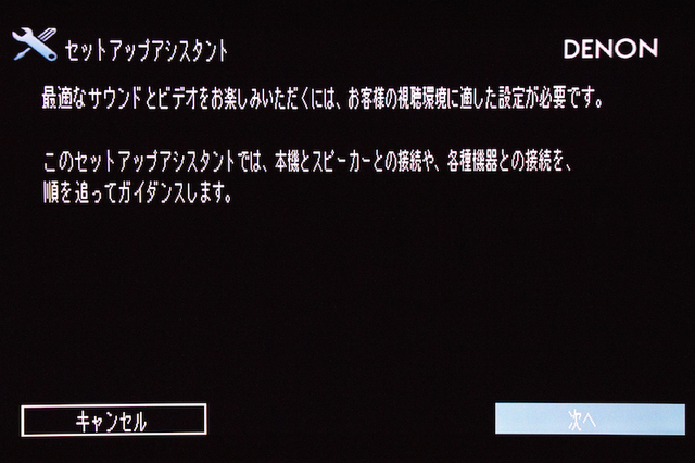 AVアンプの電源をオンにすると、テレビには自動的にセットアップアシスタントの画面が立ち上がる