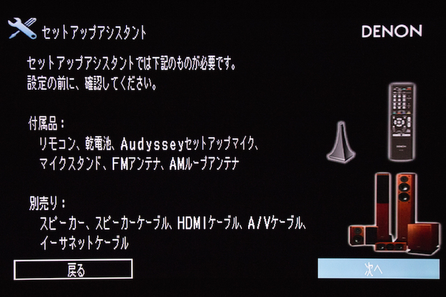 必要な付属品や別売りの機材の確認も、セットアップアシスタントがガイドしてくれる