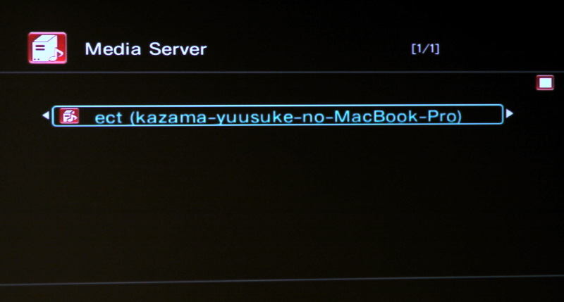 メディアサーバーではDLNA対応のサーバーが自動的に表示される。写真はDLNAサーバーソフトをインストールしたMacを認識したところ