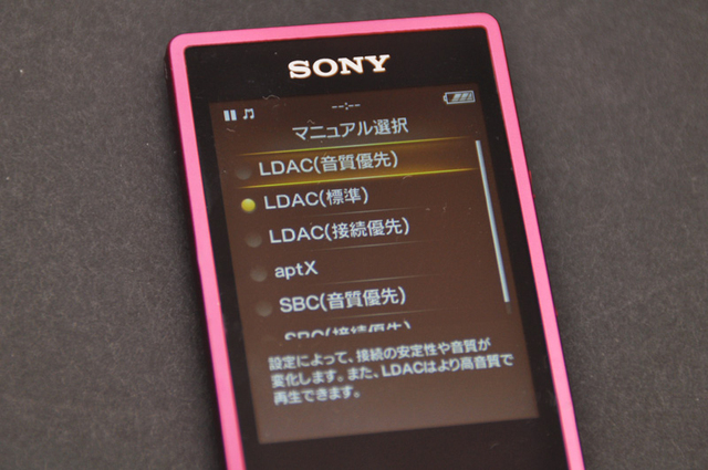 LDACの音質設定は従来通り。設定メニューの階層がとても深い所にあり、Bluetooth機器に接続していない状態でないとモード変更ができない