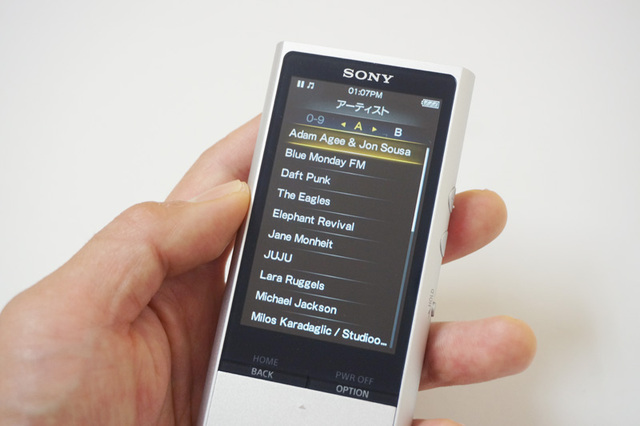 メモリー内の楽曲はアーティスト名などで検索。フリーワード入力による検索はできない