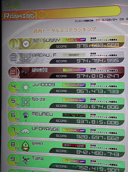 秋葉原店のトータルスコアランキングでも1位を獲得