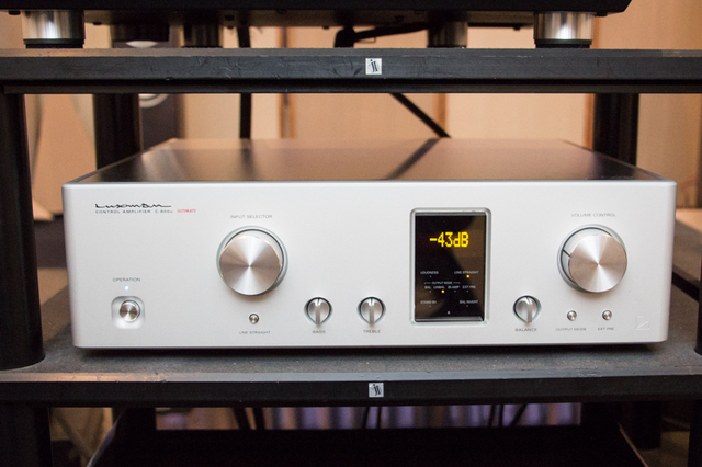 プリアンプにはラックスマンのプリアンプ最上位モデル「C-900u」を組み合わせた