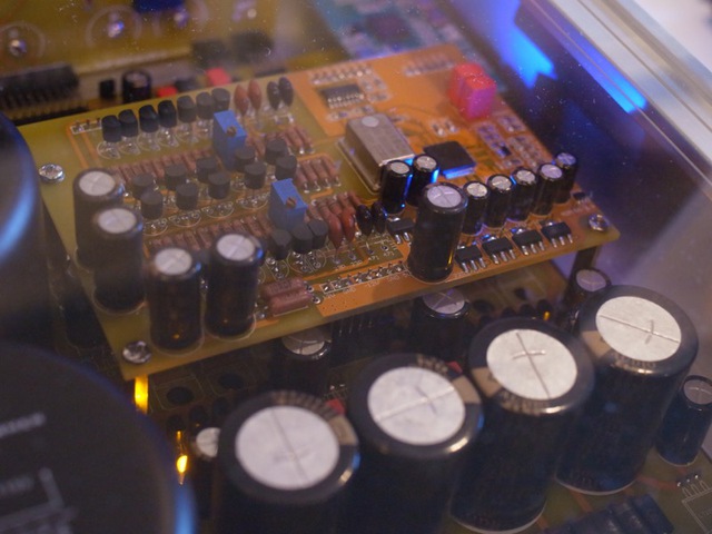 表面実装型ではない大型の抵抗やコンデンサー、トランジスタの配置、組み込みが美しい…
