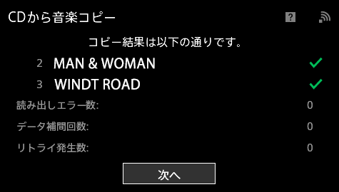 (9)リッピングが完了。リッピング時の読み取りエラー数、データ補間回数、リトライ発生数も確認できる