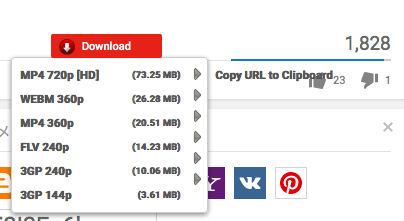 FirefoxでYouTubeにアクセスし、再生したいコンテンツの下に表示された「Download」ボタンからURLをコピーする