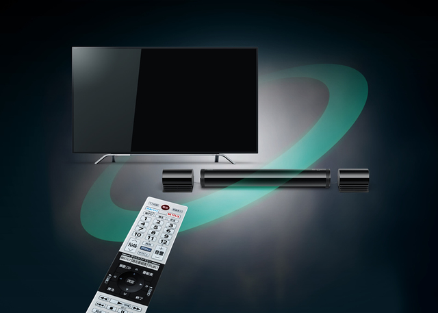 レグザ本体のリモコンで2つの機器をまとめて操作可能。レグザサウンドシステム操作用のメニューがテレビ側に用意されているなど純正アクセサリーならではの使い勝手が実現している