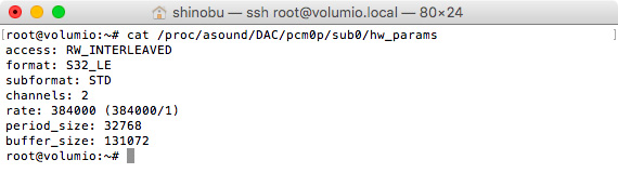 フォーマットを384kHz/24bit、タイプはFastest Sinc Interpolatorを選択したときの出力状況