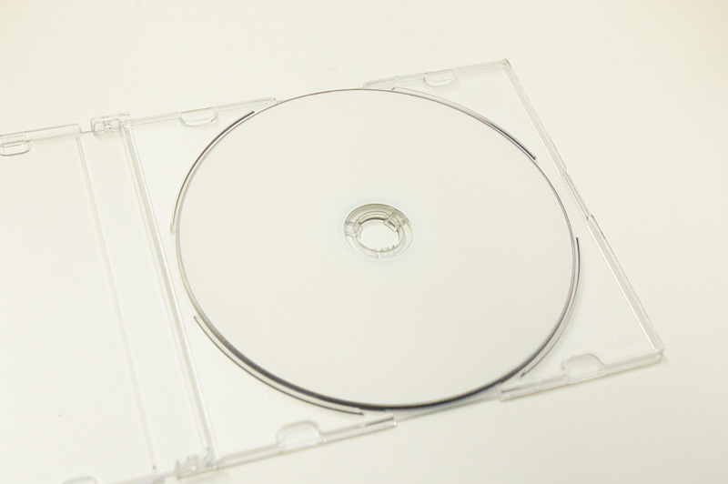 “写真画質DVD-R”の素のレーベル面。通常のホワイトディスクとしても洗練されたシンプルなデザインを採用し、用途の幅を広げている