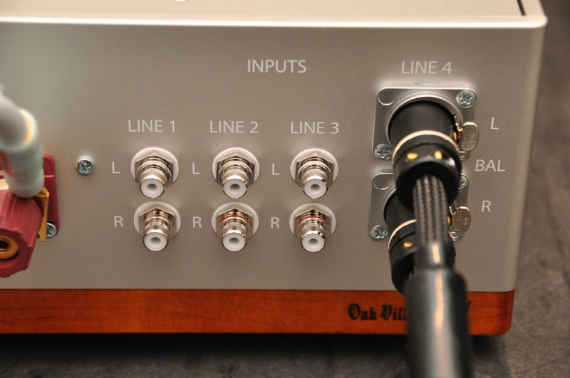 オーディオ入力端子にはロジウムメッキを施している。試聴にはサエクのバランスケーブル「XR-4000」を用いた
