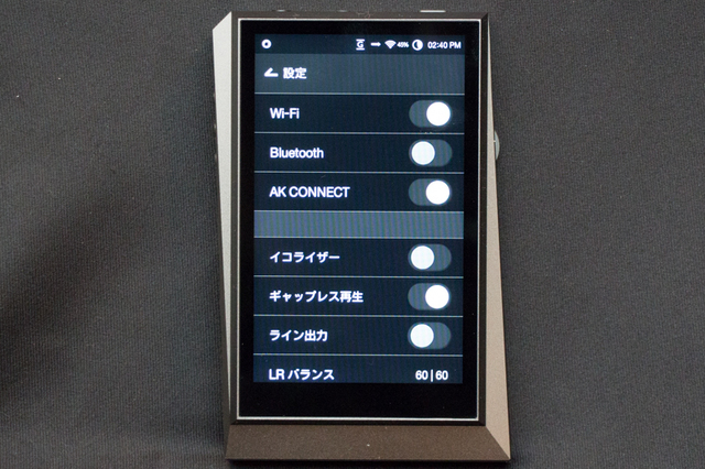 まずは設定画面で「Wi-Fi」と「AK CONNECT」をオンに