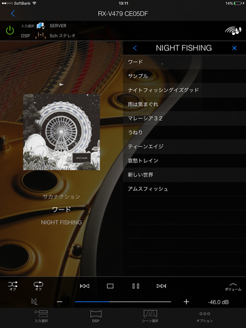 実際に楽曲を再生しているところ。ジャケット画像も表示