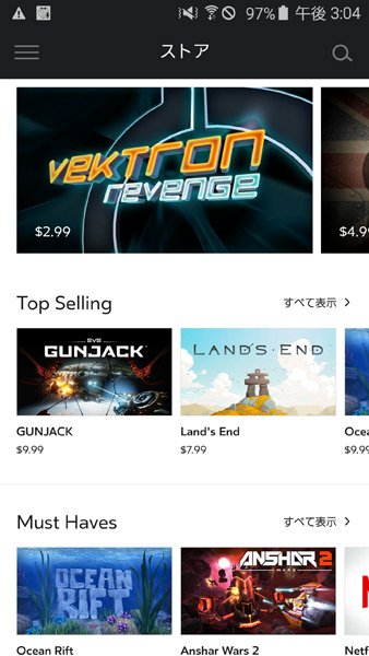 Oculus Storeのホーム画面。Gear VRを外した状態でも購入操作が可能