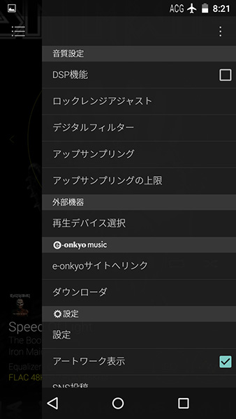 オンキヨー。右サイドから表示されてくる設定パネルの内容はほぼ同じ。e-onkyo music関連機能もここに搭載