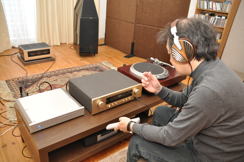 自宅試聴室にてedition10のサウンドを確かめる山之内氏