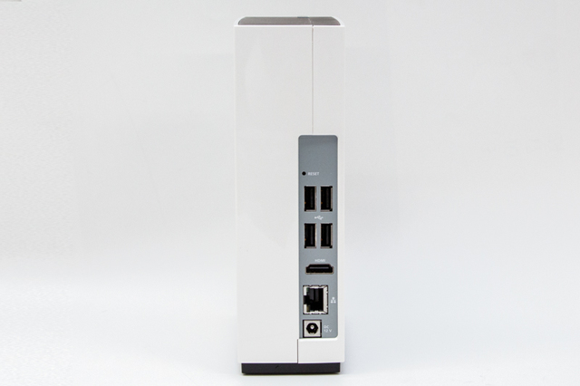 TAS-168の背面端子部。LAN端子、HDMI端子、および4つのUSB端子を備える