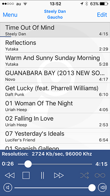 MPDクライアントとしての機能を備える無償iOSアプリ「MPoD」。有償のiPad版「MPaD」も公開されている