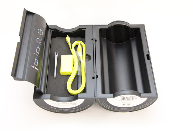 パッケージも円筒形でデザインが凝っている。USBケーブルなどが付属する