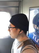 帰りの機内で、QC25を装着して爆睡する編集部・小澤。13時間のフライト中ほとんど起きなかったようだ
