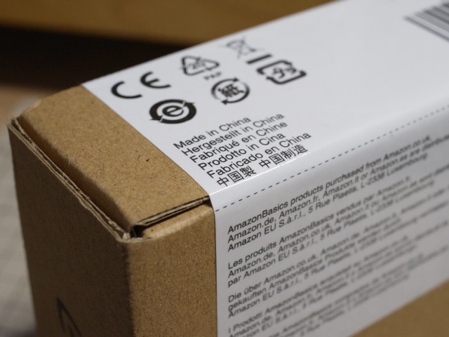 Amazon「E100」のパッケージ側面と裏面。普通に中国製。スペック表記とか特になし