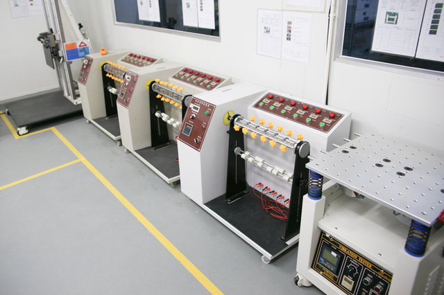 UV耐久試験やケーブルの引っ張り強度、温度衝撃試験、温度・湿度耐久試験など品質管理に関わる様々な検査機器を韓国本社同様に用意している