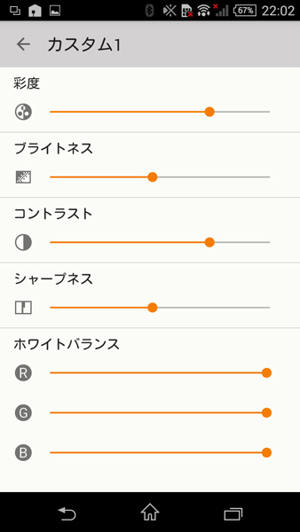 画質調整はカスタム値を登録しておくことも可能だ