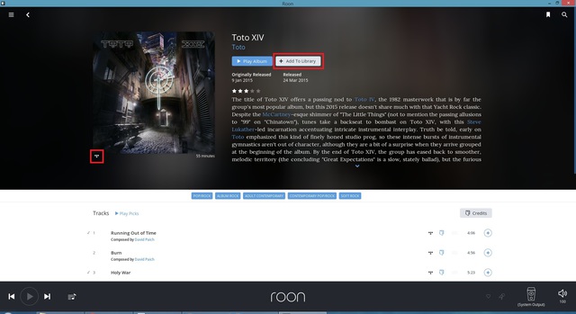 TIDALで配信されている『Toto XIV』を表示したところ。赤枠は後述の「Add To Library」ボタン