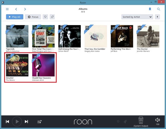 WAVファイルをインポートした結果。曲名とジャケット名、そしてアートワークがほぼ正しく表示されている。以下で赤枠のアルバムの詳細を確認してみよう