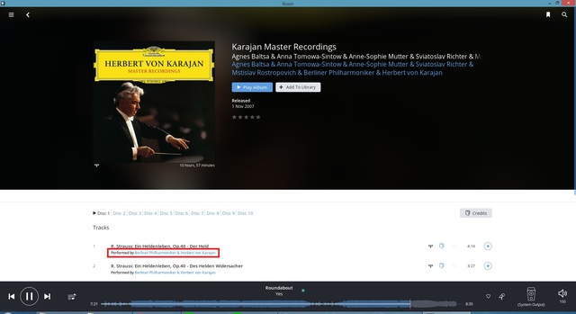 「Performed by Berliner Philharmoniker & Herbert von Karajan」の表記にリンクがついている