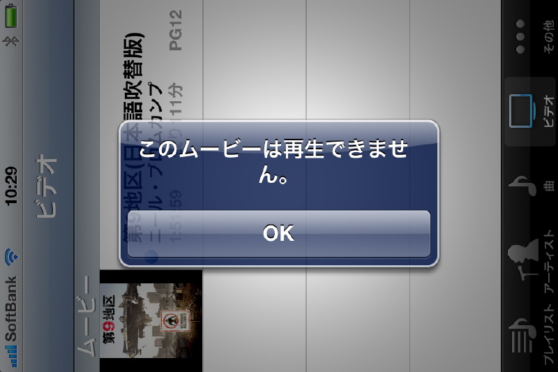 iPhone 4では当初、画面のようなエラーが出て再生できなかった