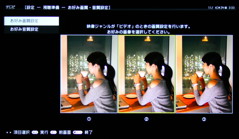 「お好み画質設定」画面。好みの映像を選択していくだけでユーザーの好みを学習してくれる