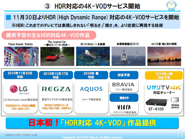 シャープのアクオス、ソニーのブラビアもひかりTVの4K HDRに対応予定。パナソニックのビエラも対応を検討している
