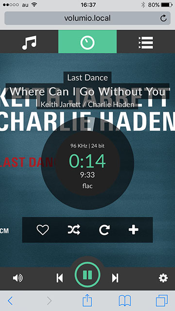 FLAC 96kHz/24bitを再生しているところ。アルバムアートワークは、どこかのWEBサービスから自動ダウンロードされる