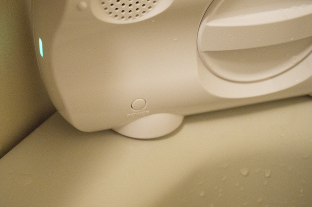 背面には電源ボタンがあり、電源がONになっているときはインジケーターが点灯します