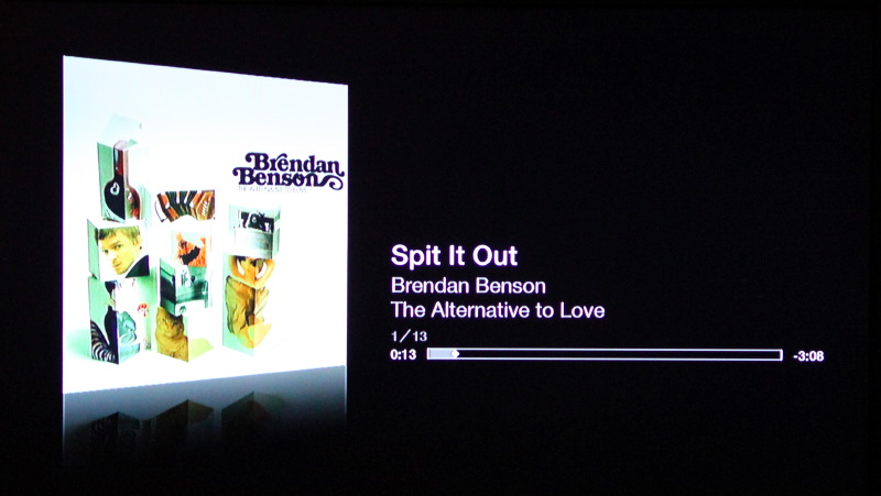 音楽再生時の画面。これを表示しておく必要が無いなら、Remote Appで操作してテレビを消しても良い