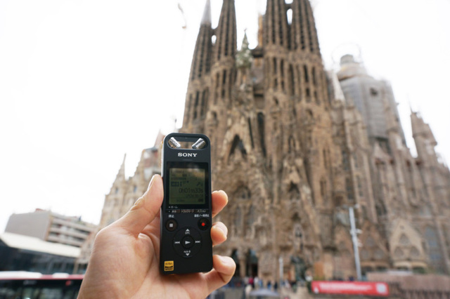 ハイレゾ対応ボイスレコーダー「ICD-SX2000」を片手に、サグラダ・ファミリア教会の鐘の音など、バルセロナの街にあふれる音を録りながら1日歩き回った。