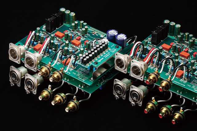 出力バッファー回路には、電流出力能力が高く、スルーレートが2000V/μsというハイスピード素子を採用。バッファー回路は出力ラインごとに独立、XLR出力の場合はホット/コールドをシンメトリー構成として、瞬間的な電流供給能力を最大化している