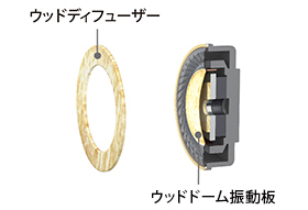 樺材を薄膜加工してドーム状に成形加工し、ベース材に貼り合わせたウッドドームユニットを採用